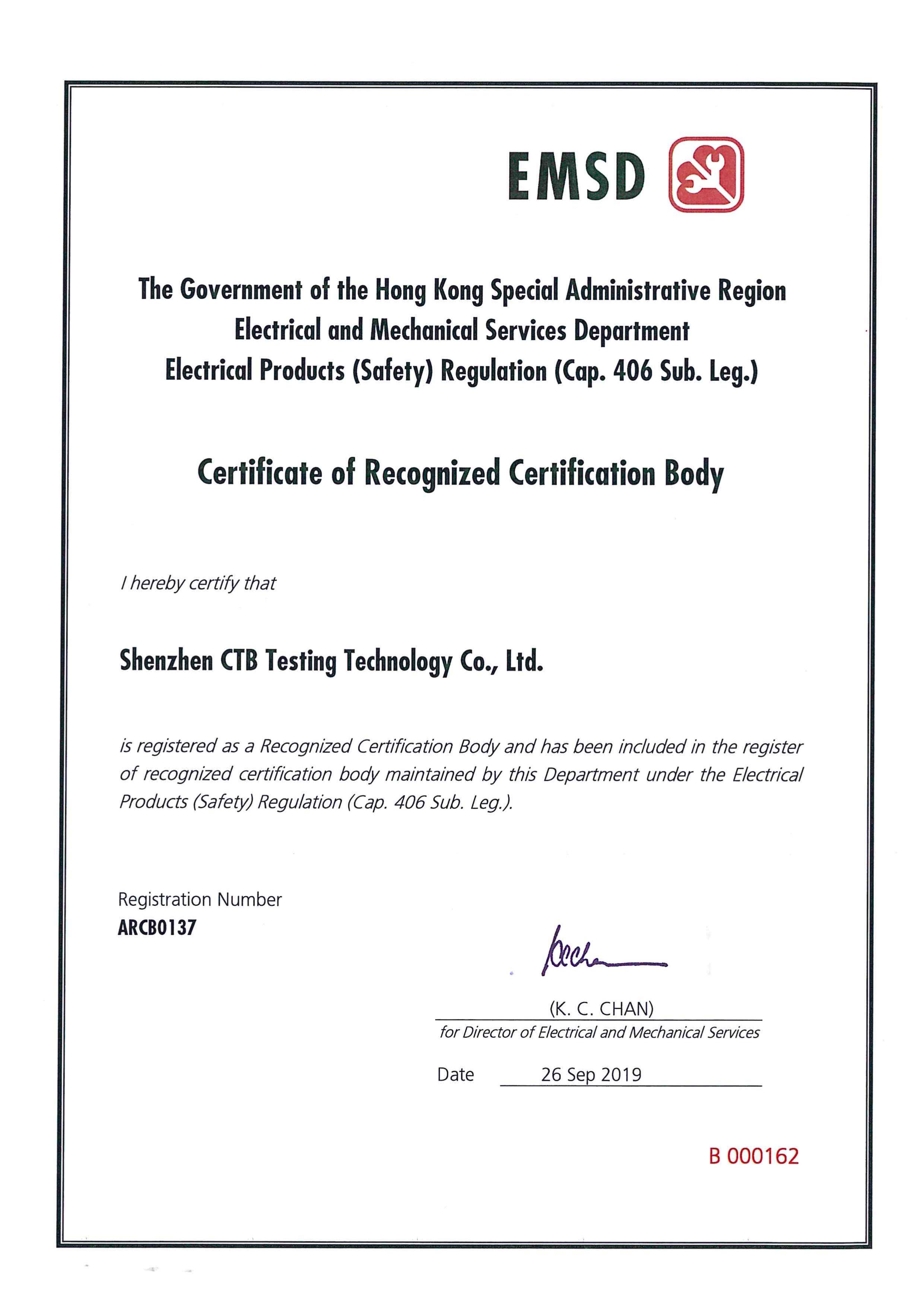 香港機電署授權證書